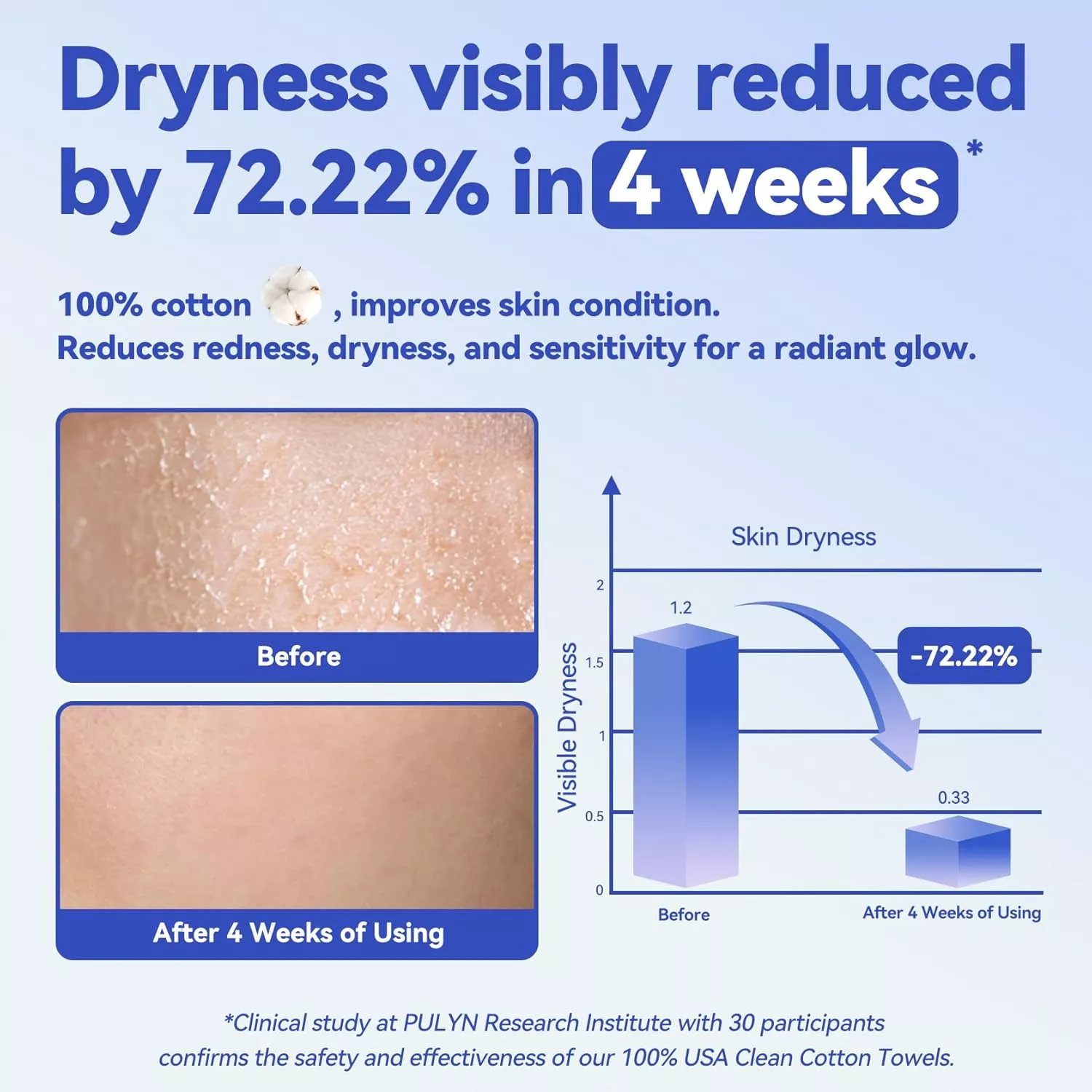 Yüz pamuklu havlu, Uluslararası Çevre Koruma Örgütü (IEPO) tarafından sertifikalandırılan ve kimyasal çamaşır suyu kalıntısı olmayan Sincan Uzun Başlıklı Pamuktan yapılmıştır, böylece kırılgan cildi ve bebeğin hassas cildini nazikçe koruyabilir. Çift taraflı üç boyutlu petek desen tasarımı, su emiliminin arttırılmasını iki katına çıkarır, makyajın çıkarılması kolay, temizlik, ıslak sıkıştırma, çok amaçlı bir havlu, stratum corneum'a tekrarlanan sürtünme hasarına veda eder. Kalınlaştırılmış 80g/m2 ağırlığı, ıslak su kırılmaz ve pullardan düşmez, 3-5 kez, çevre koruması ve ekonomik olarak yeniden kullanılabilir.