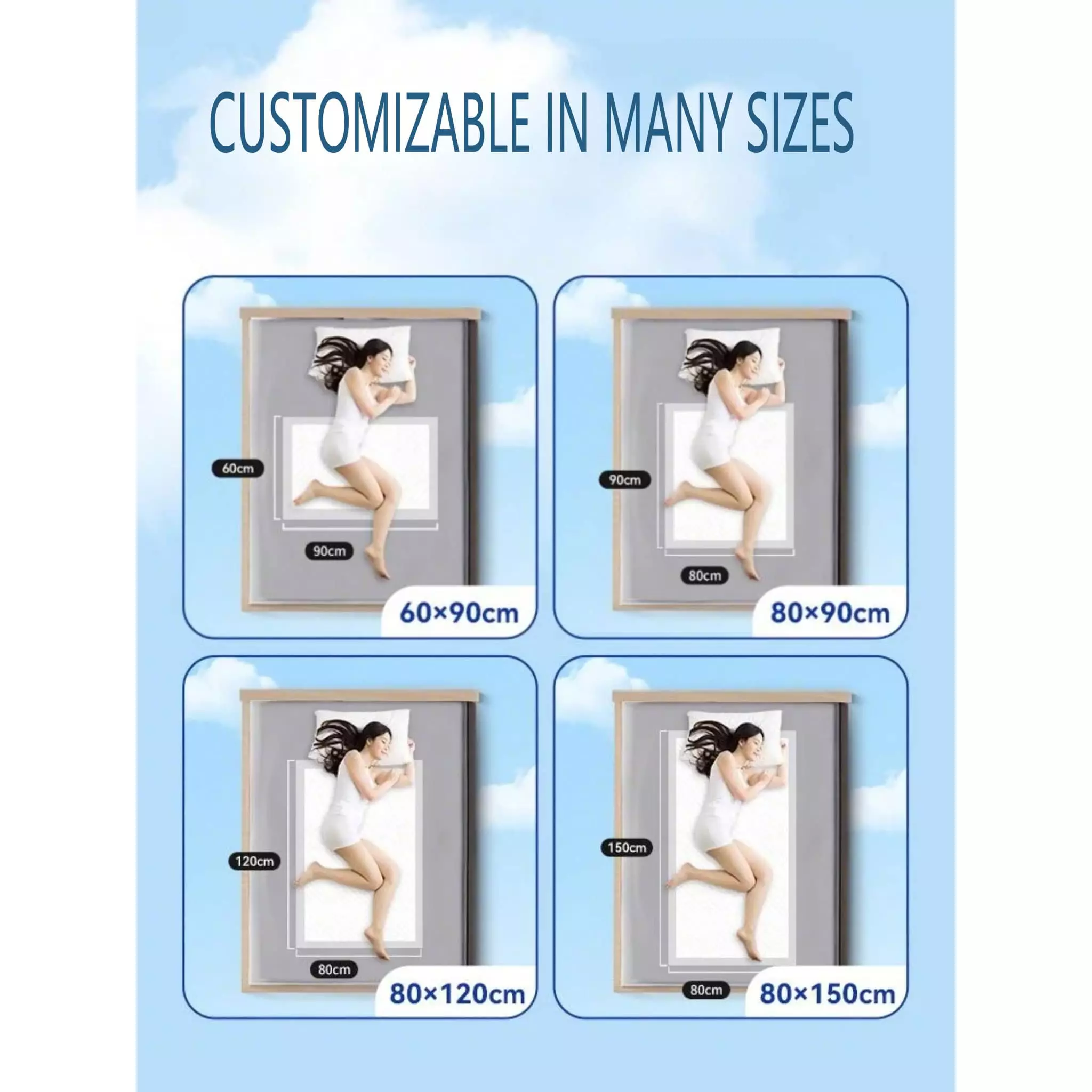 İnkontinans Pedleri 80*150cm büyük boyutlu profesyonel bakım çözümleri oluşturmak için doğal kabarık hamur ve kompozit çekirdek yapının kullanımı. 6 katmanlı hassas istifleme işlemi, beşikler, evcil hayvan kafesleri, tıbbi yataklar ve diğer geniş alan senaryoları için uygun “anlık emme + su kilitleme + sızıntı + nefes alabilen” dörtlü koruma elde etmek. 45-105G gradyan gram seçenekleri. 45-105g gradyan ağırlık seçenekleri, mavi/beyaz/pembe/siyah/yeşil çok renkli özelleştirme, hem fonksiyonel hem de pratik ve görsel estetik.